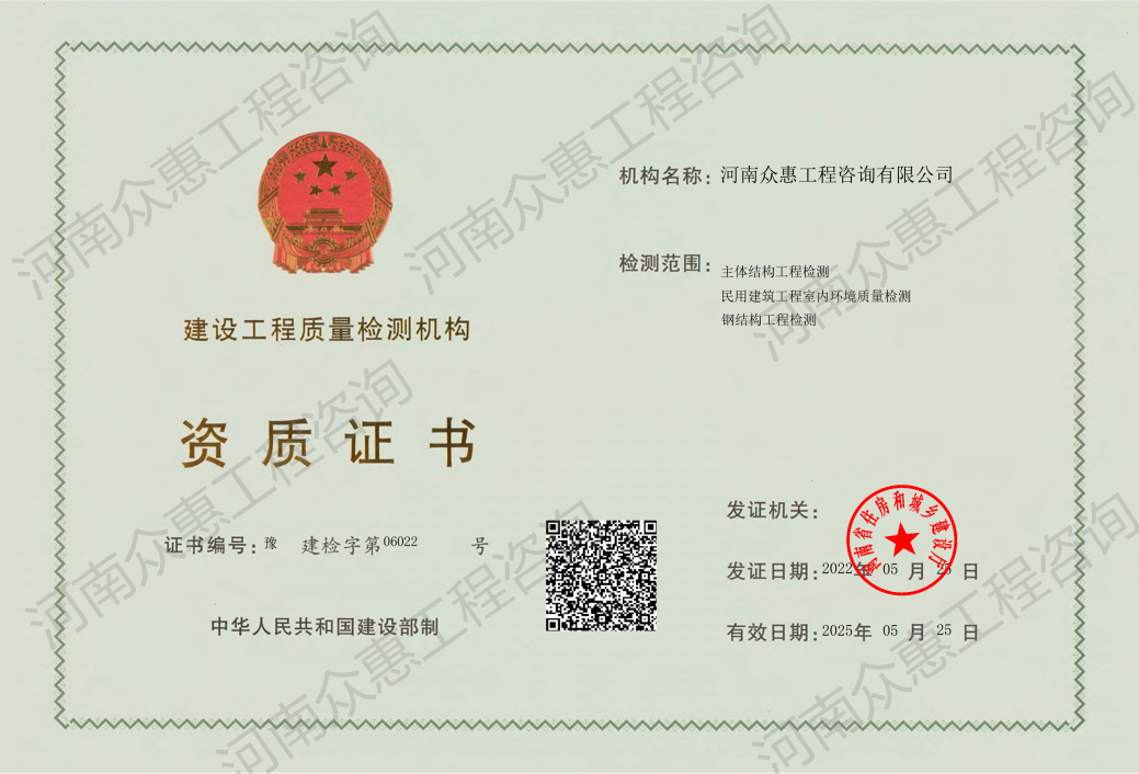 主体结构、室内环境质量检测、钢结构工程检测资质