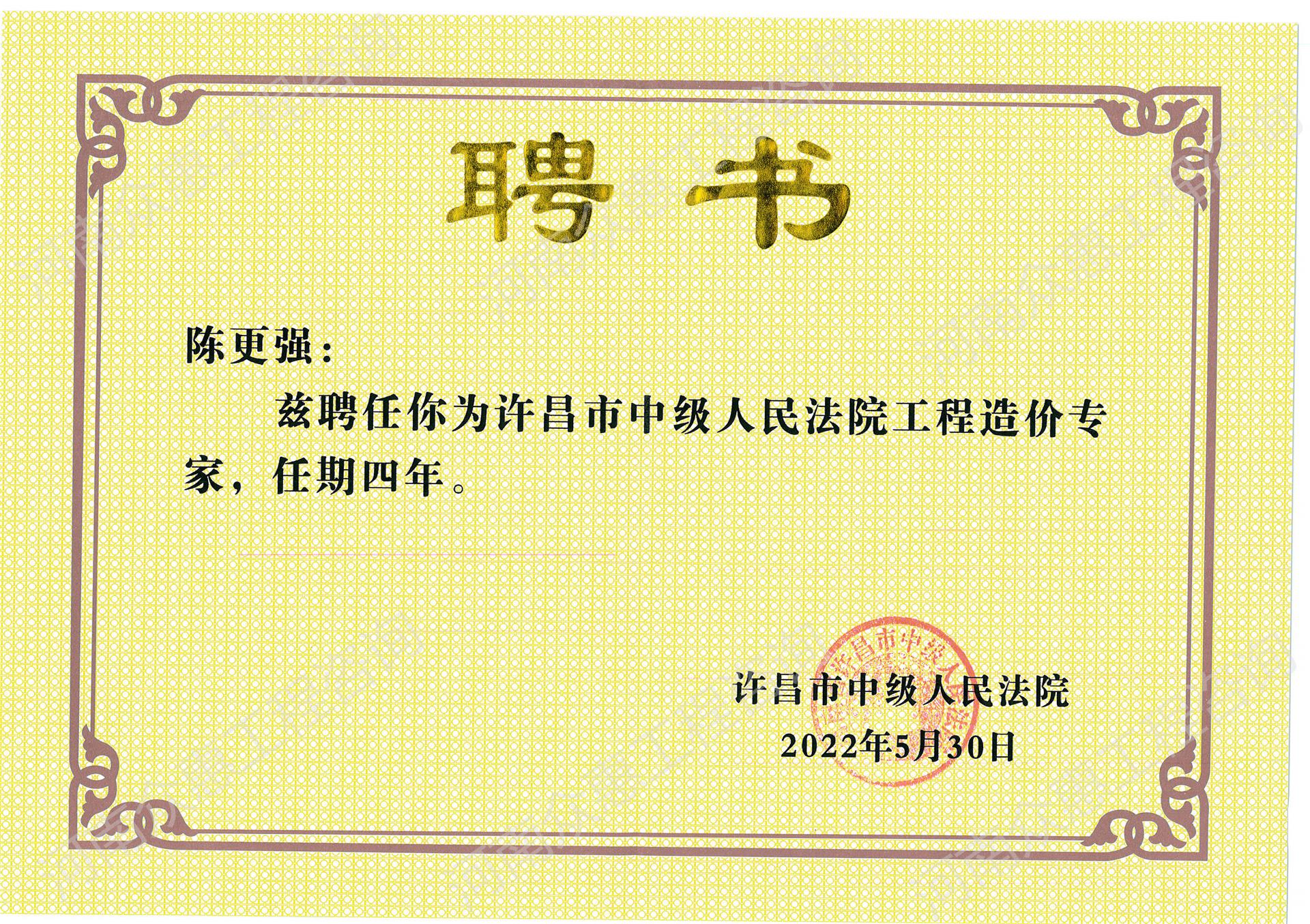 陈更强造价专家聘书